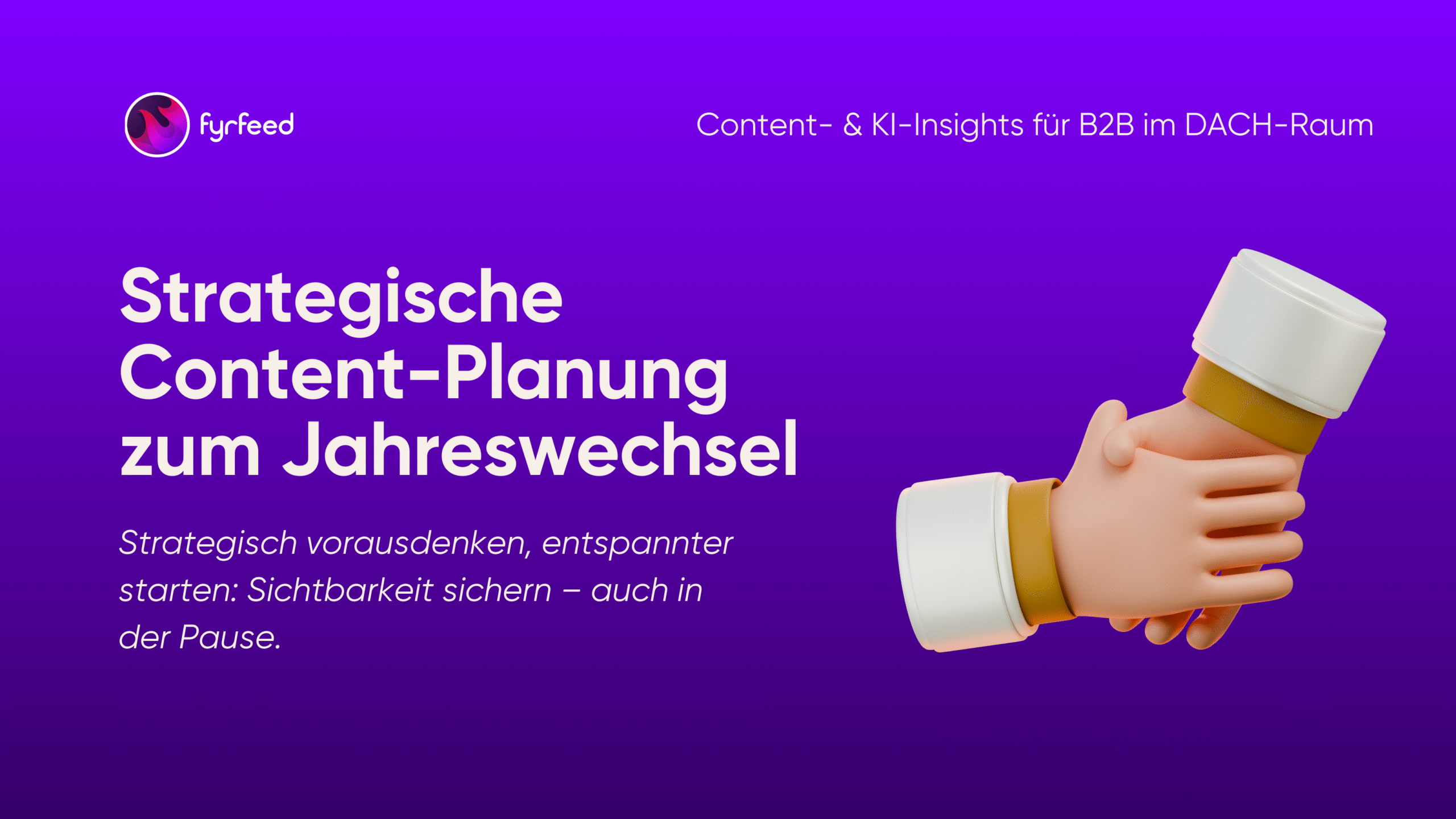 Content schläft nicht. Aber du darfst es. Mit der richtigen Vorbereitung und Tools wie fyrfeed an deiner Seite startest du entspannt ins neue Jahr und bleibst trotzdem präsent. Denn am Ende geht es nicht darum, immer online zu sein. Es geht darum, relevant zu sein, wenn es zählt.